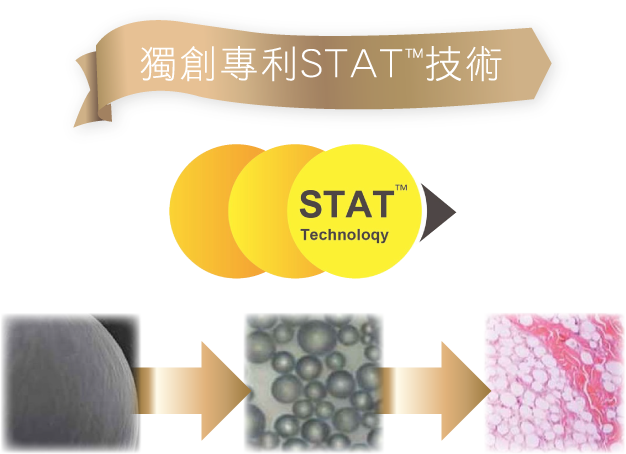 PCL微球在皮膚深層隨著注入的凝膠均勻地浮起,平均分佈 在皮下組織內的3D空間,搭建一個幫助皮膚重新生長自體膠原蛋白的支架。 完美球體可進行皮膚組織再造工程, 微球的平滑面輕 柔地與組織接觸,有效刺激全新優質膠原蛋白的增生。